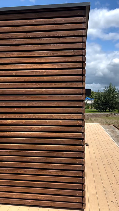 Все элементы постройки окрашиваются в 2 слоя с промежуточной и финишной шлифовкой. Стандартная краска Teknos Akrylin (цвет на выбор) по каталогу RAL Classic – более 1000 цветов. Масло, пропитка или другие производители красок – рассчитываются индивидуально