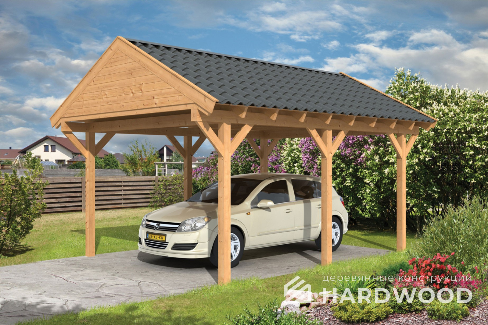 Деревянный авто-навес с зоной барбекю №115 - фото 878