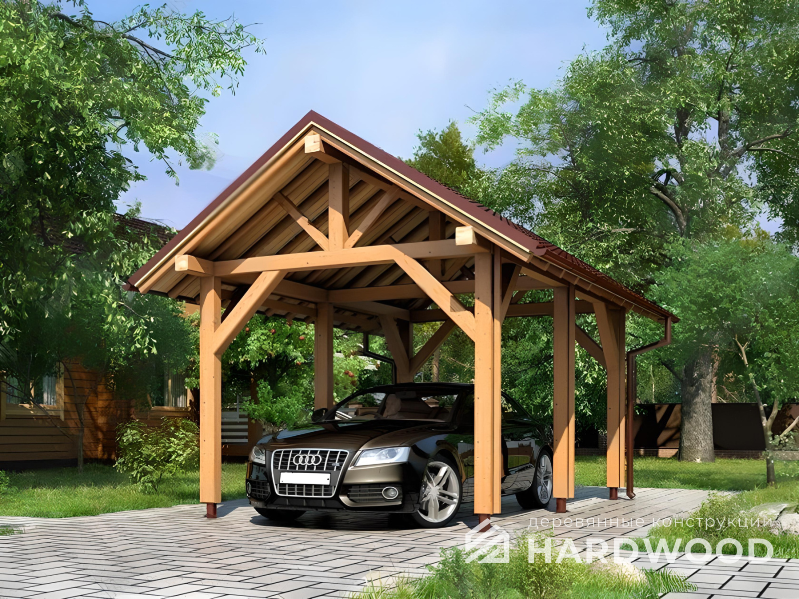 Деревянный авто-навес с зоной барбекю №115 - фото 880