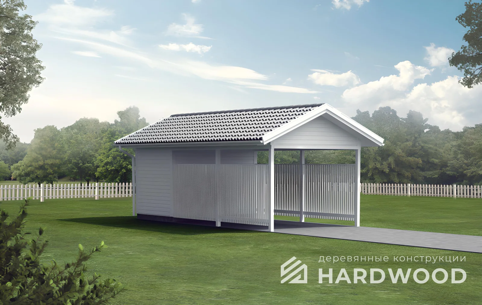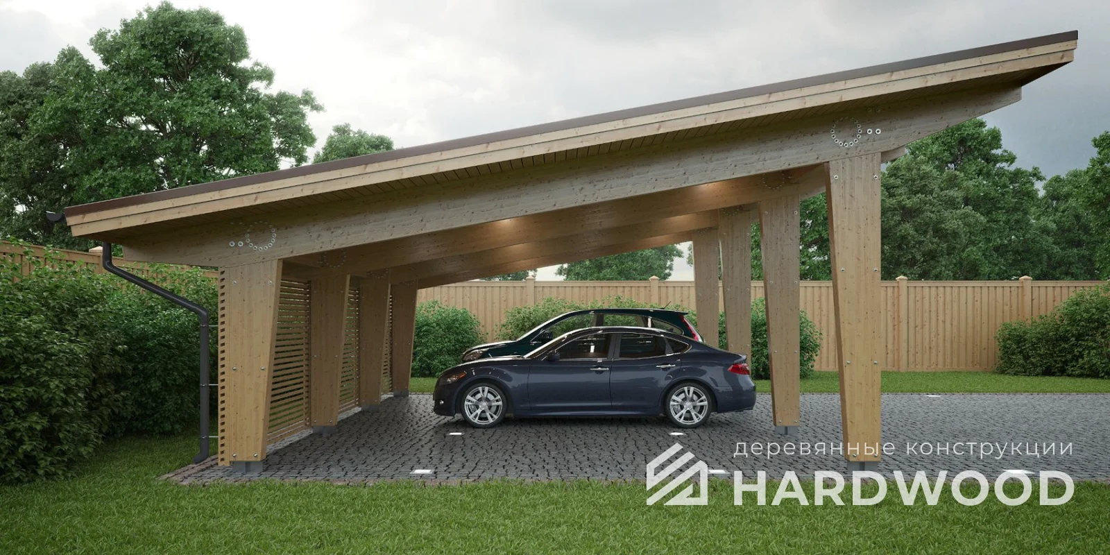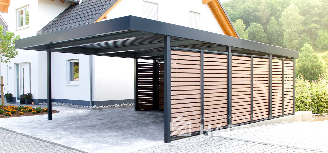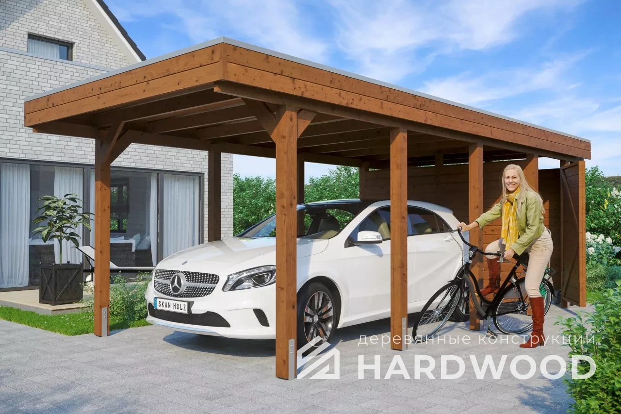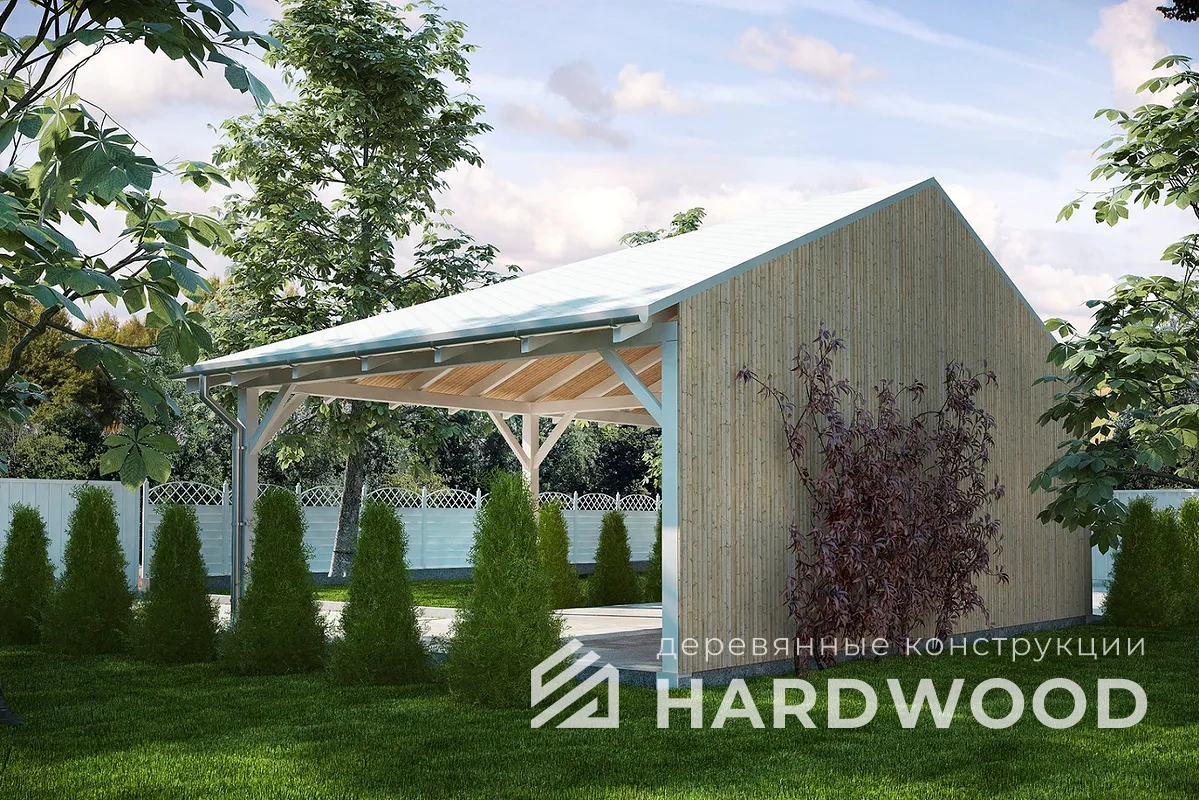 Строим деревянные навесы с хозяйственным блоком для автомобилей