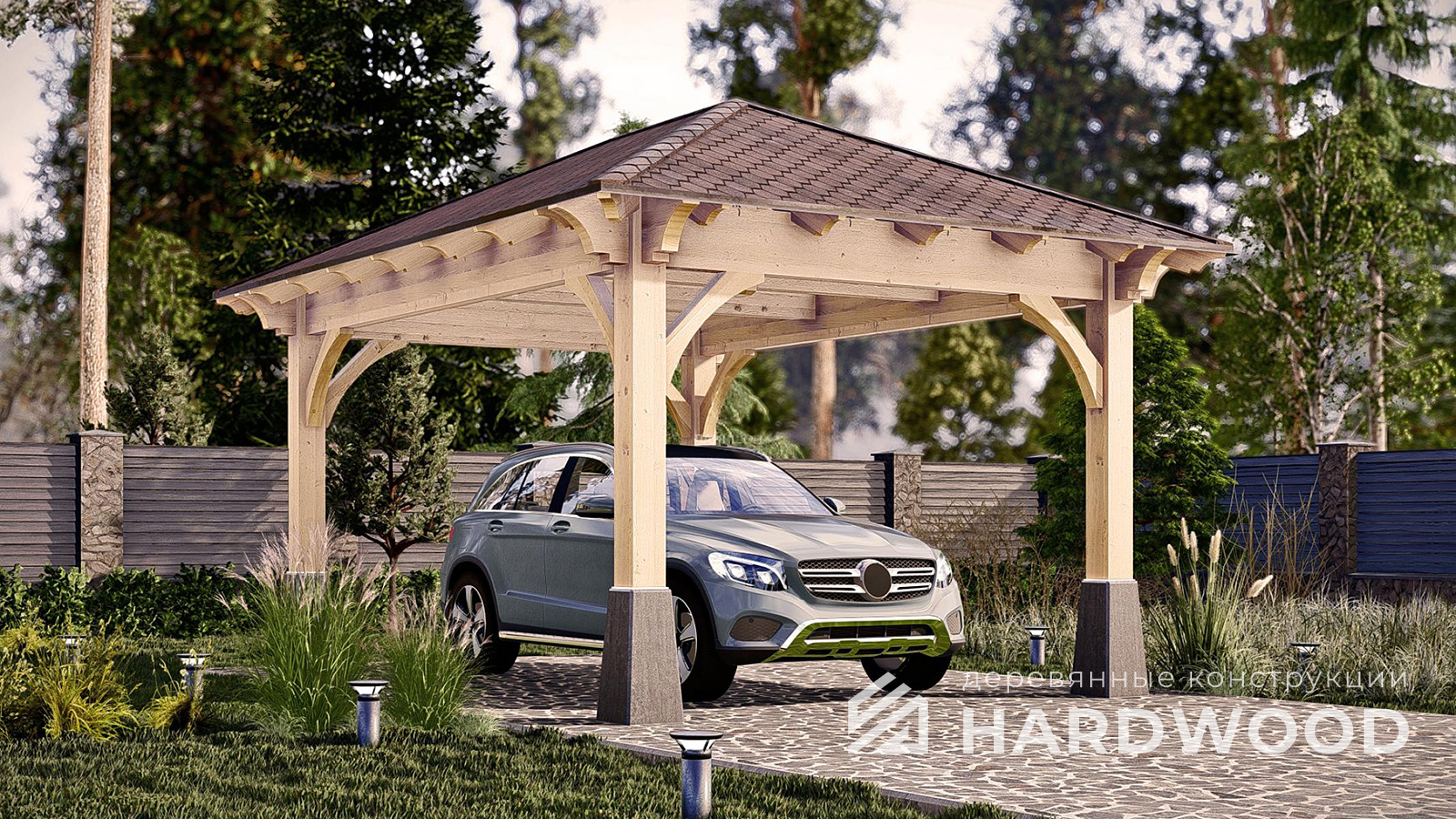 Автомобильные деревянные навесы по акции